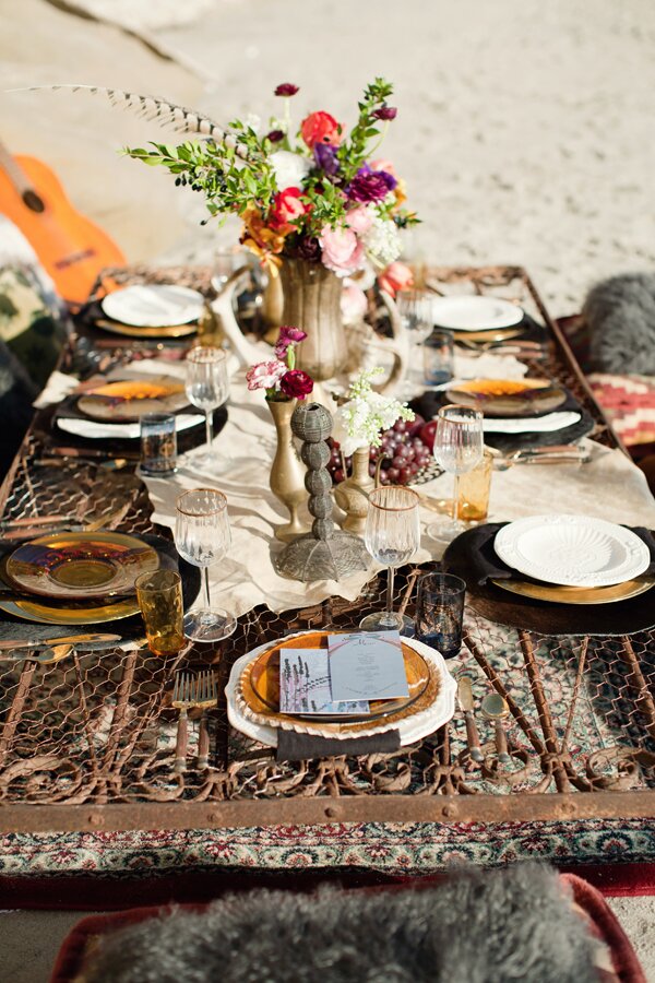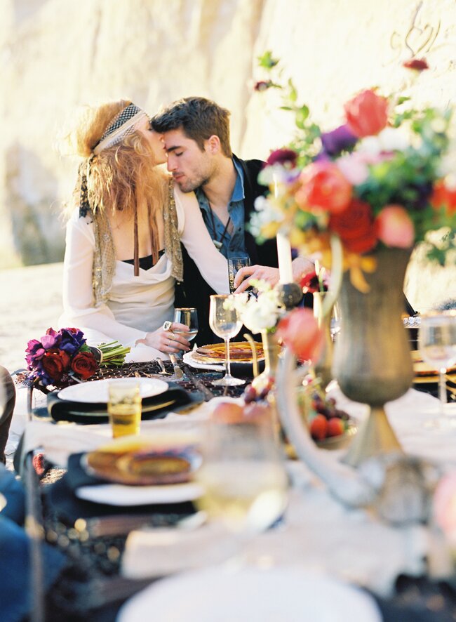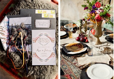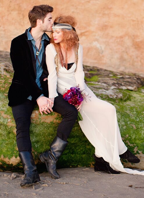 You've probably spied this shoot over on Green Wedding Shoes and 100 Layer Cake, but we just couldn't resist coming back with the rest of our personal favorites. We had quite the megastar team between the models (some of our favorite industry photographers and some rad local musicians), the lovely Katie Neal behind the lens, Tori's husband shooting video, a rockstar paper guru, amazing makeup team, and the accessory darling, Lo Boheme, to name just a few involved. And the very best part? We got to collaborate from start to finish with our favorite San Diego girl, Miss Emilia Jane on the design and styling behind the whole day. We couldn't be happier with the results. We have mega gypsy love.